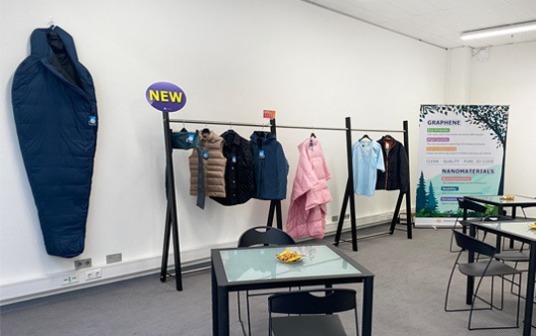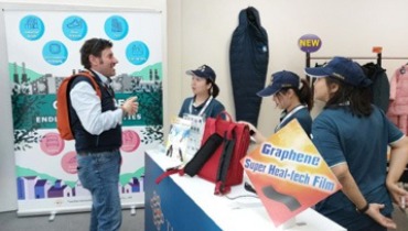 Tại sự kiện, chúng tôi giới thiệu dòng sản phẩm màng nhiệt Graphene gia nhiệt nhanh – được phát triển theo quy trình thân thiện môi trường – với nhiều ưu điểm nổi bật như: tăng nhiệt nhanh và giữ nhiệt hiệu quả, tỏa nhiệt đều trên bề mặt và tỉ lệ phát xạ hồng ngoại xa vượt trội. Giải pháp này đặc biệt phù hợp cho các khu vực khí hậu lạnh và có thể ứng dụng rộng rãi vào nhiều sản phẩm, thiết bị và phụ kiện thể thao ngoài trời, giúp đáp ứng xu hướng phát triển sản phẩm mới của thị trường và góp phần nâng cao giá trị ứng dụng cho các ngành liên quan.